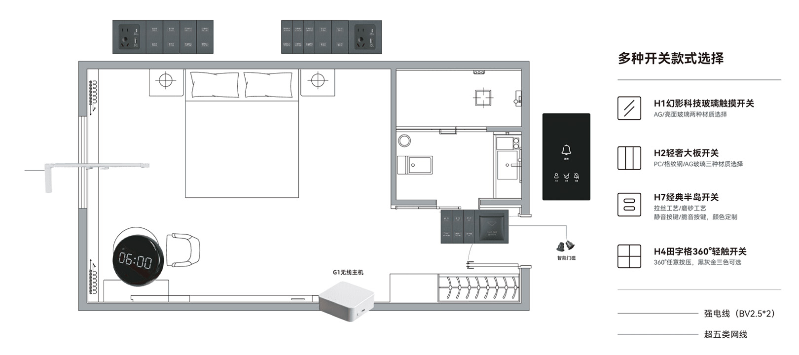 實(shí)現開(kāi)關(guān)顏色、款式、功能、燈光色彩自由定制,打造屬于酒店獨一無(wú)二的風(fēng)格